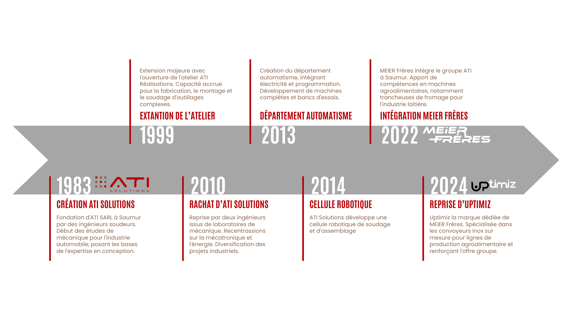En 2022, Rodolphe BEAUGRAND et Samuel PLUMEJAULT reprennent et transfèrent MEIER Frères à SAUMUR. Associée à ATI Solutions, MEIER Frères devient un spécialiste des équipements pour l’agroalimentaire.